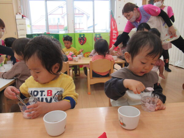 いちごフルーチェ できましたよ
