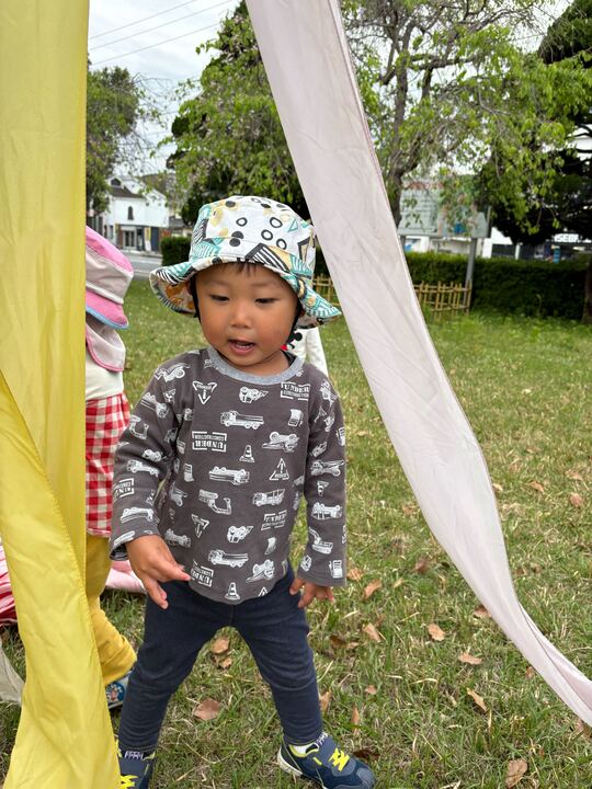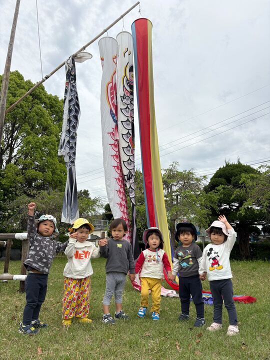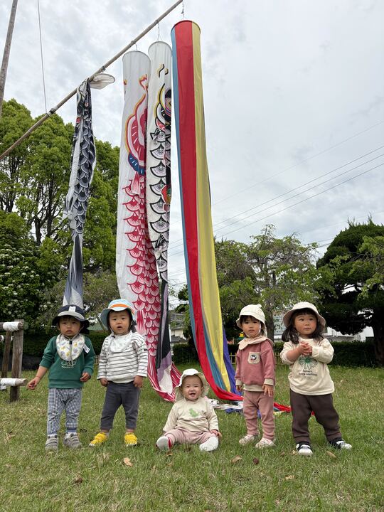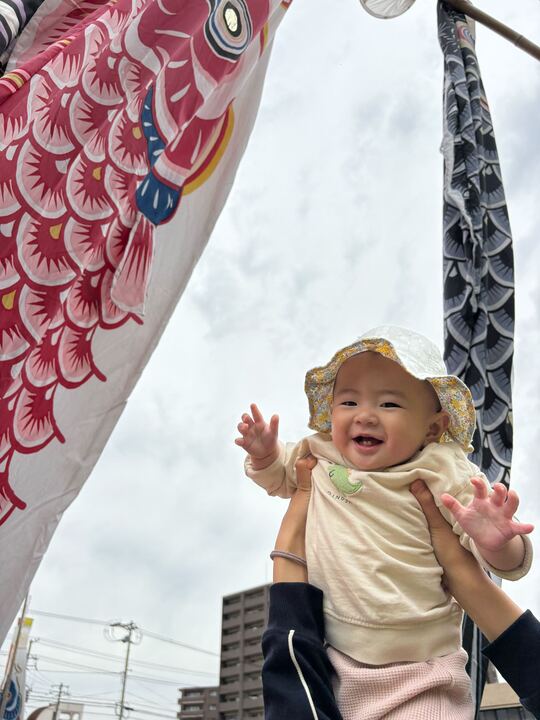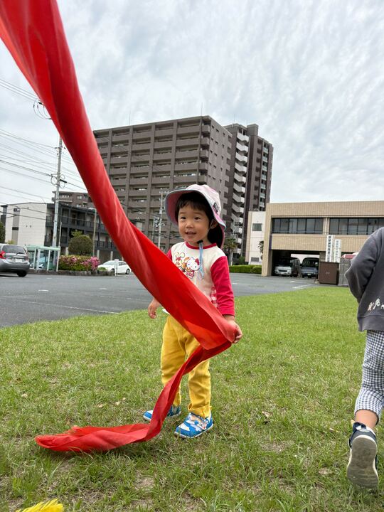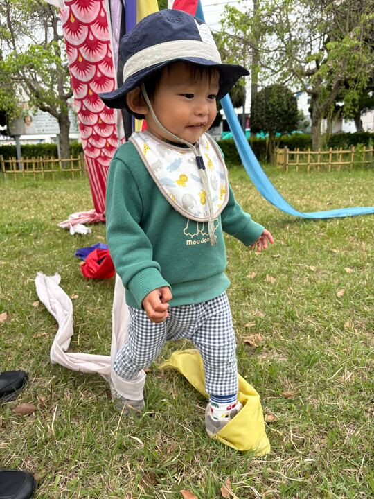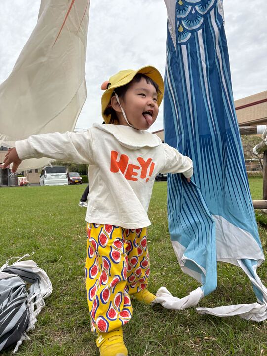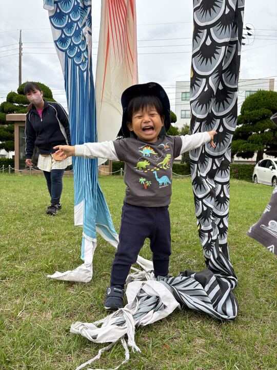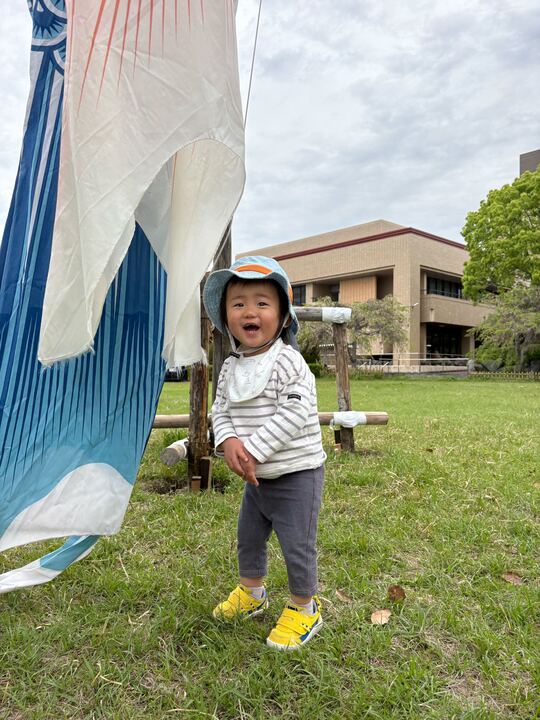 風で揺れるこいのぼりを追いかけたり、とても楽しそうでした‼