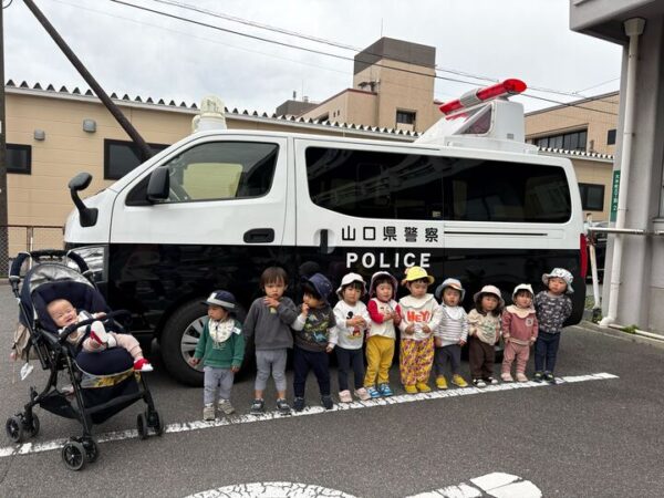 こいのぼりと遊んだ後は警察署に行って、パトカーを見せてもらいました‼