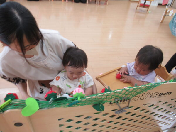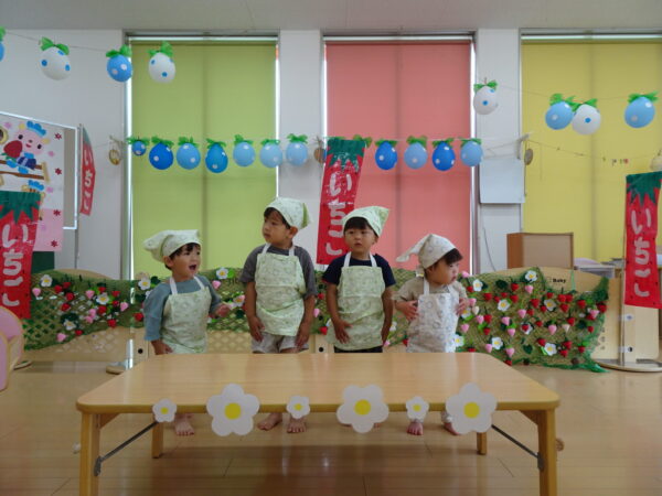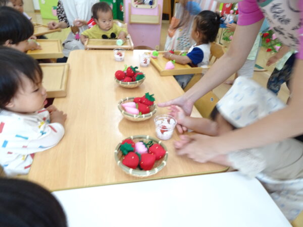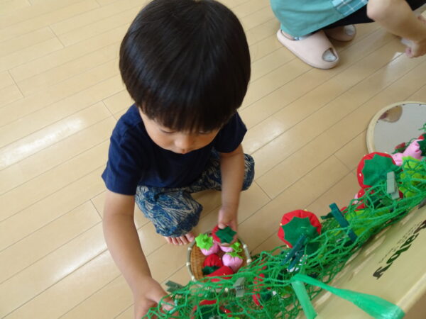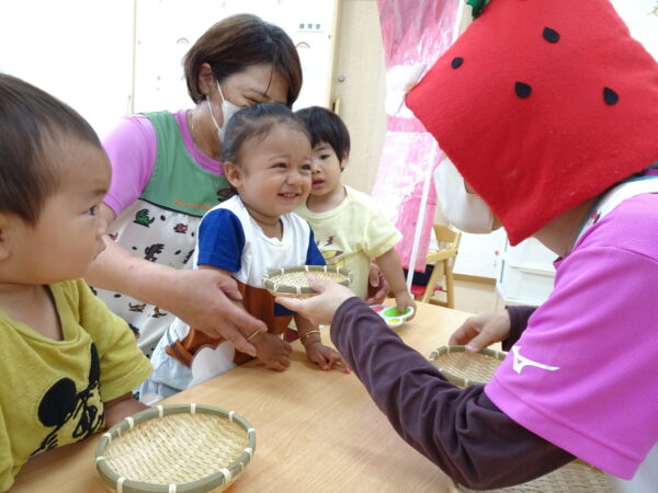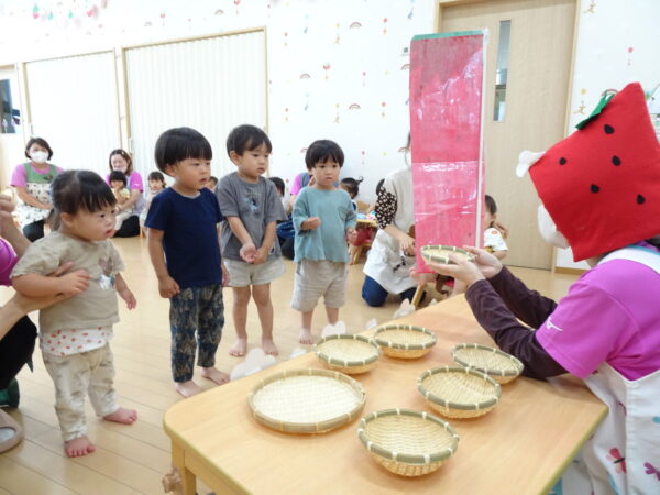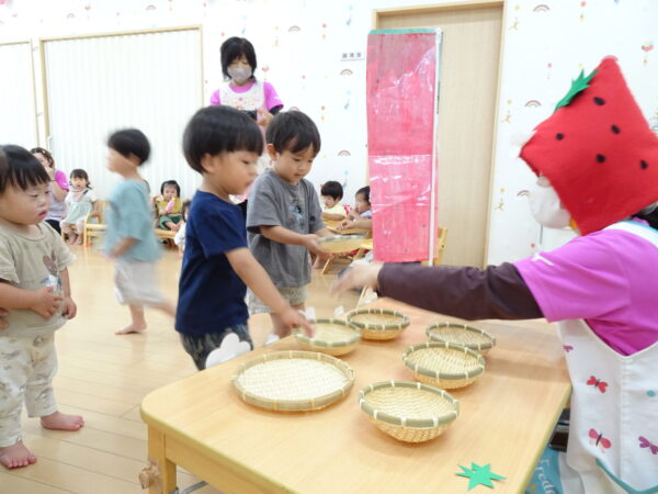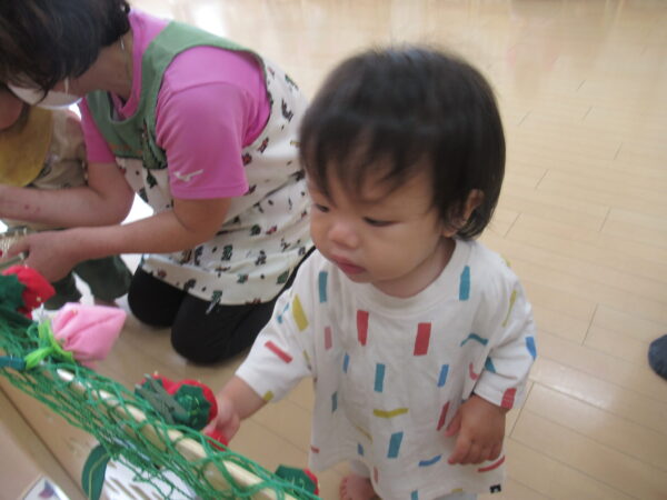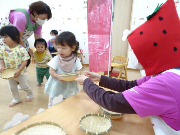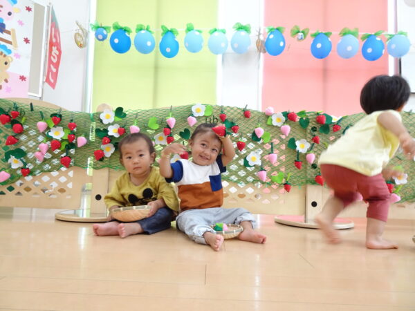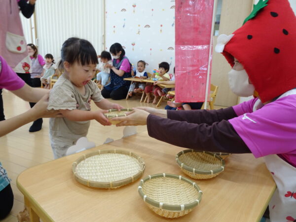 そらぐみさんが つきぐみさんとはなぐみさんに