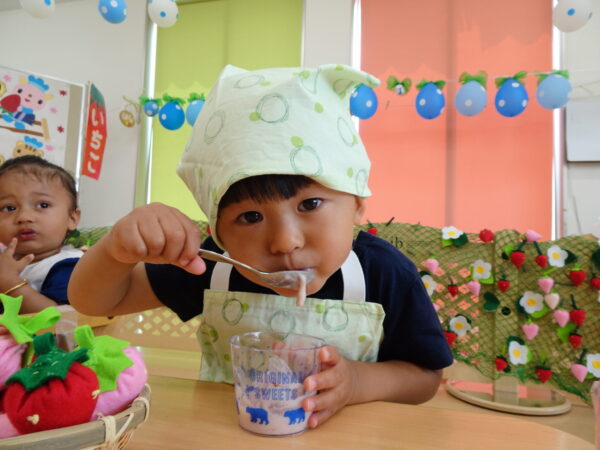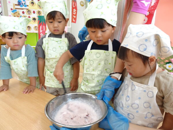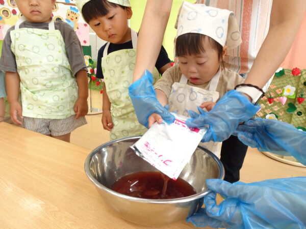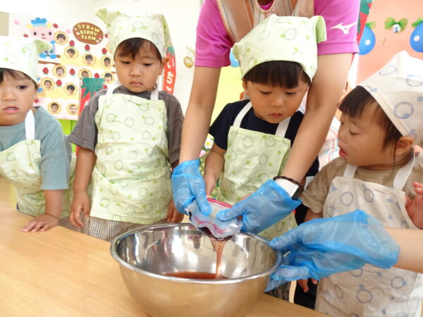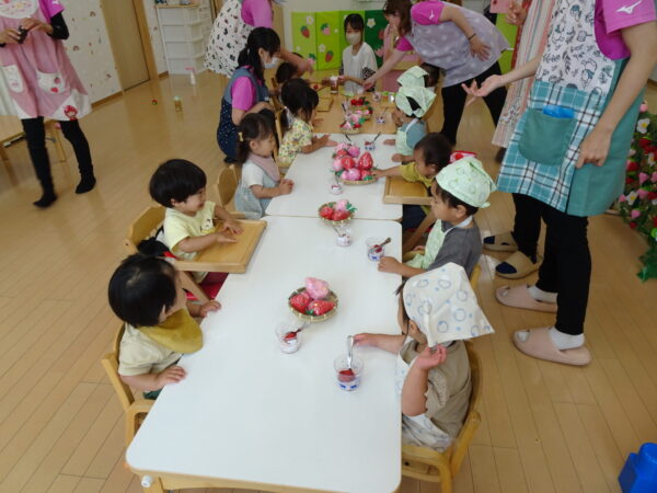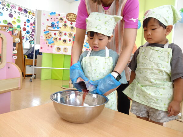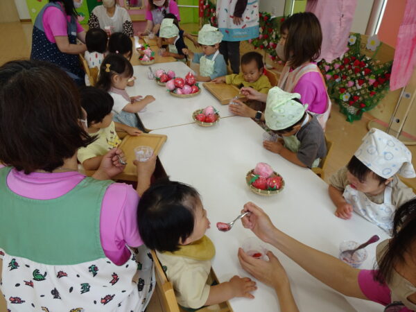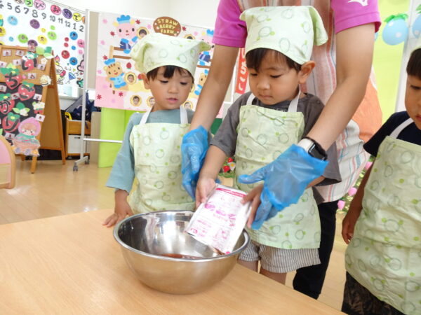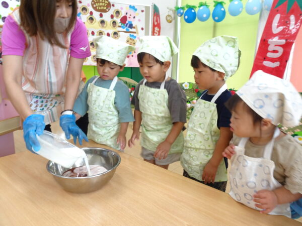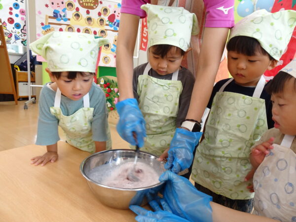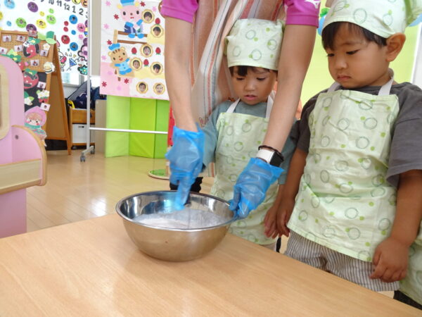 そらぐみさんが つきぐみさんとはなぐみさんに