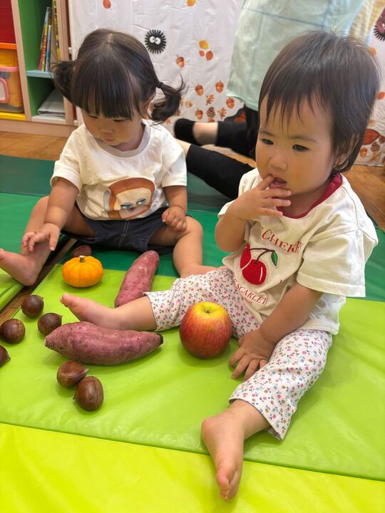 2025年10月17日 / 最終更新日 : 2025年10月17日 yamashita 企業主導型保育園 さくらのテラス 食育🍎 食育の日☆ 旬の野菜や果物に触れて・・・触って当てようクイズ‼ みんな・・・野菜や果物を触って当てる事ができました❁ ゆき組さんは、感触を楽しんでいましたよ♡ この後に・・・おやつでさつまいもを食べました♪ \ 最新情報をチェック / FacebookXBlueskyHatenaCopy