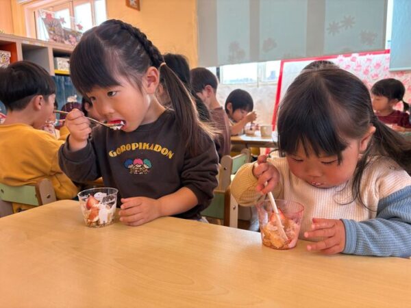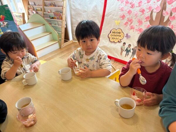 朝のおやつはイチゴパフェ🍓おいしかったね✨