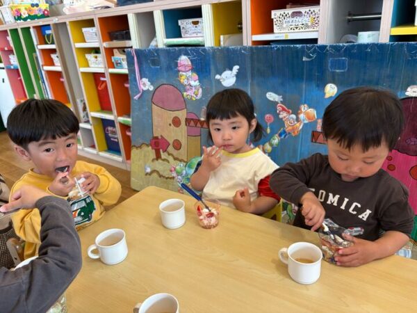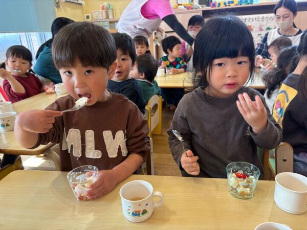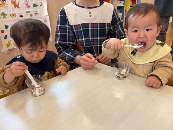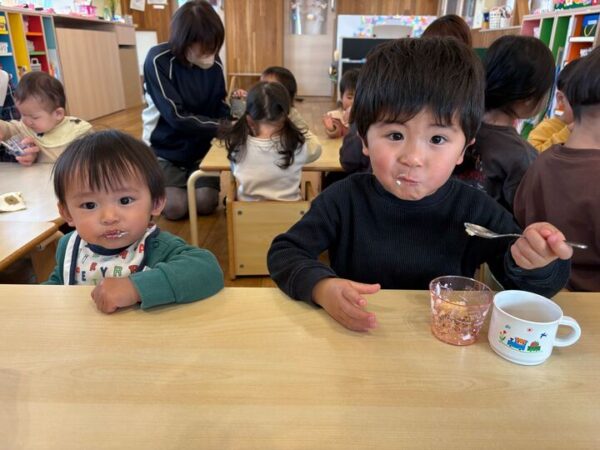 公園から帰ってきたら、お楽しみの給食です♡