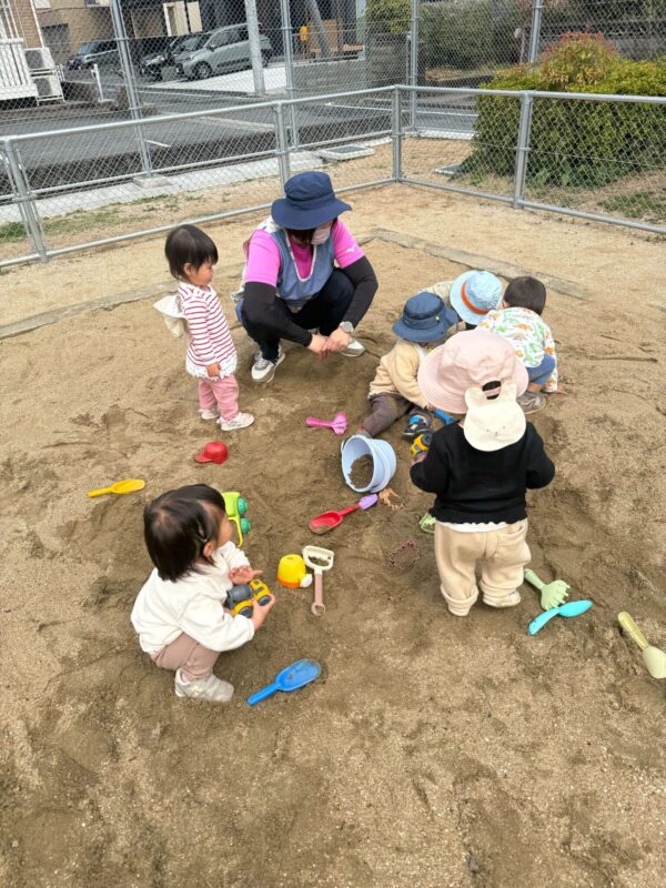 新入園児さんも頑張っています✨先生と手を繋いでお散歩です‼