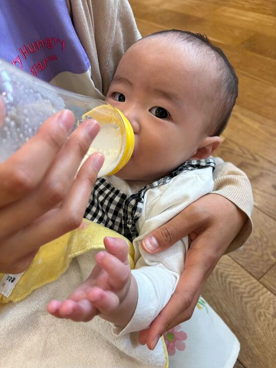 ゆきぐみさんは保育園で初めてのミルク🍼おいしいね♡