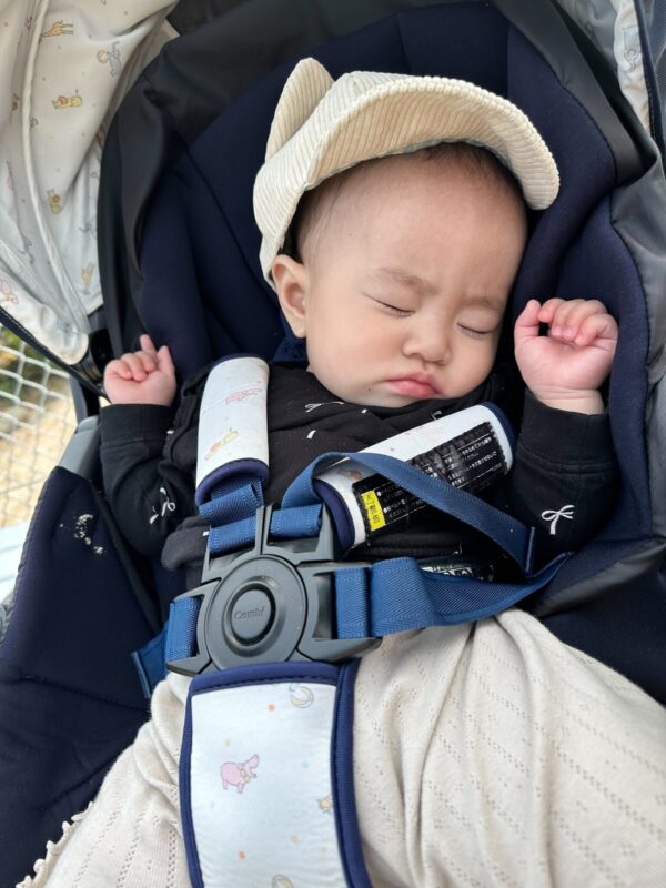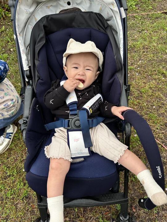 今日はベビーカーでお散歩して、おやつを食べました‼
