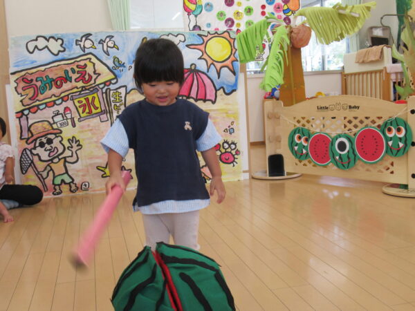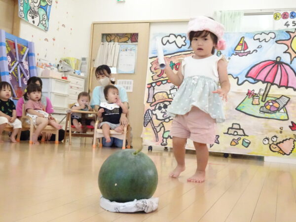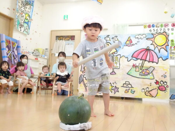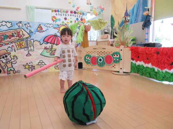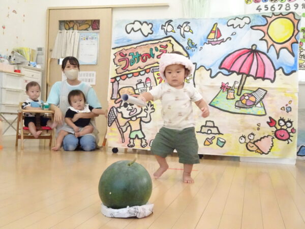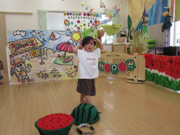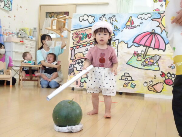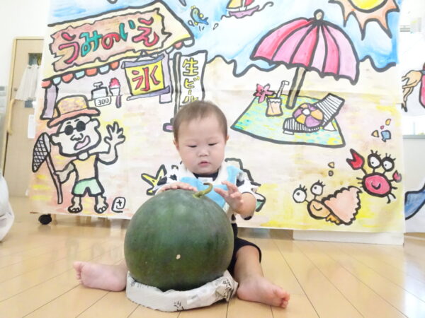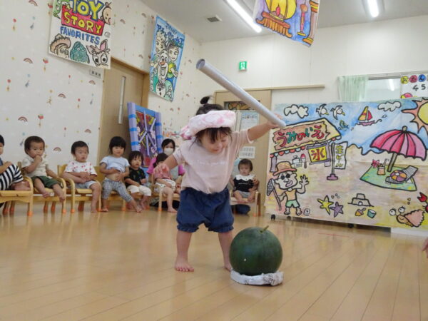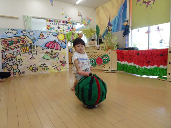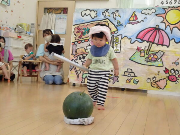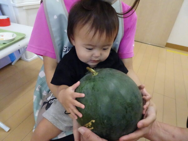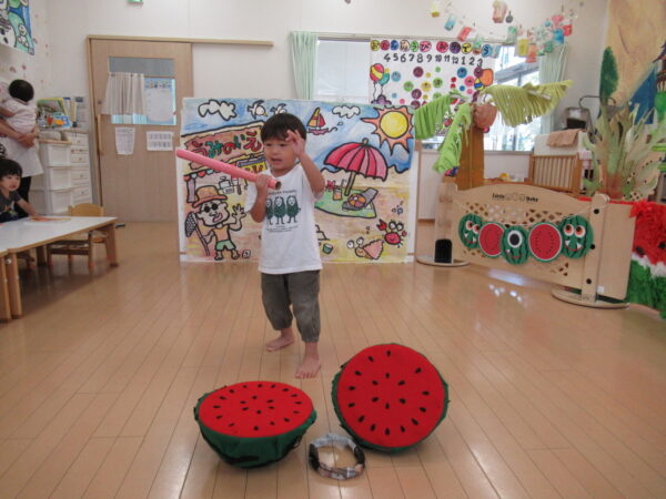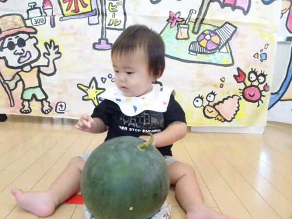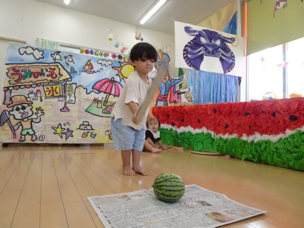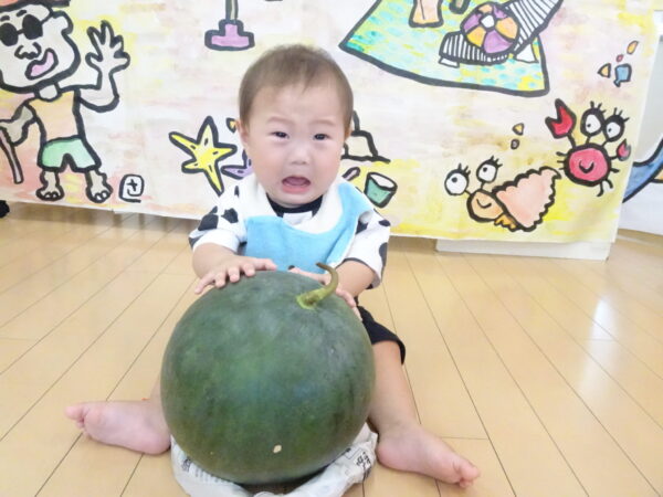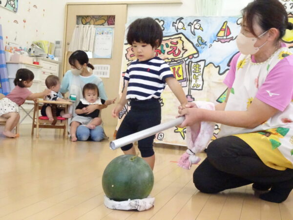 2025年7月31日 / 最終更新日 : 2025年7月31日 yamashita 下松市小規模保育園 太陽のテラス スイカわりで遊ぼう🍉 毎日 暑い日が続いていますが 太陽のテラスのお友だちは 元気いっぱいです😊 夏の風物詩 スイカわりで遊びましょう 大きな スイカ🍉 触ってみよう! スイカ割りはじめるよ~ そらぐみさん がんばって✨ なかなか割れないね~ つきぐみさん がんばって✨ 割れません😢 はな組さん がんばって✨ はなぐみさんより 大きい! まだまだ 割れないね~ それなら ”なんちゃってすいか”で もう一度! おいしいスイカ 「いただきまーす!」 スイカわりは 楽しくて おいしいね🍉 \ 最新情報をチェック / FacebookXBlueskyHatenaCopy