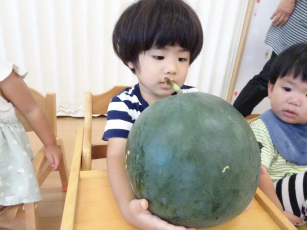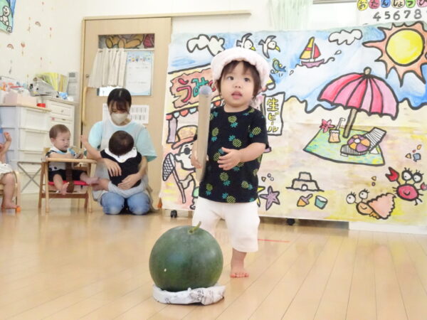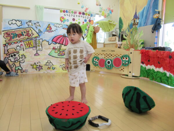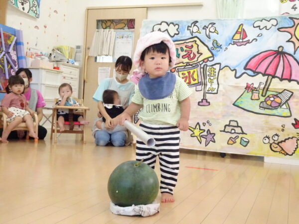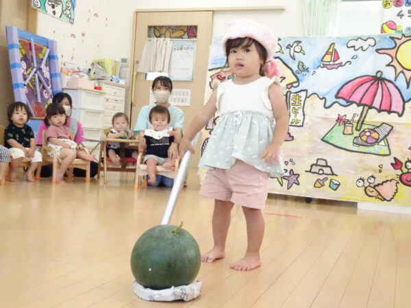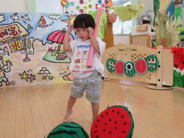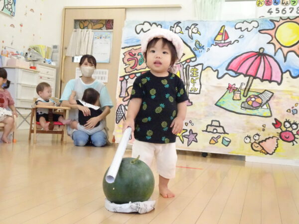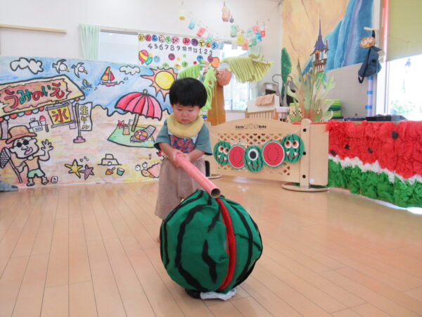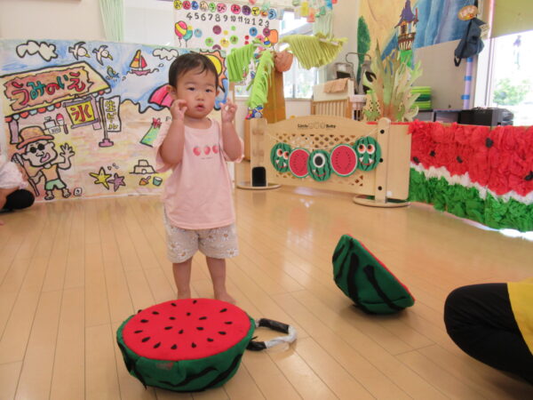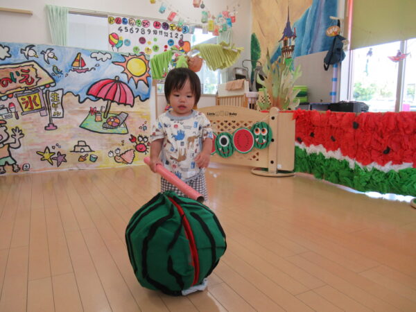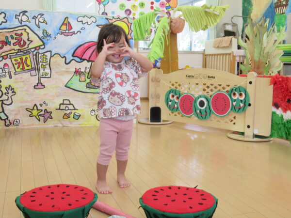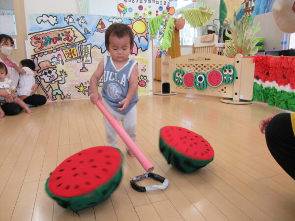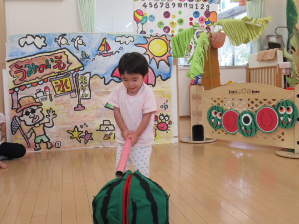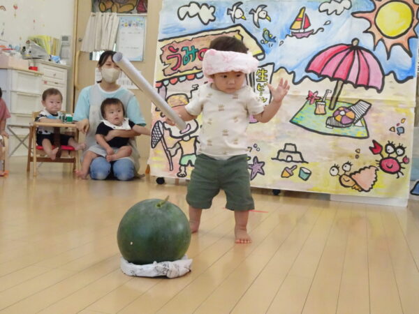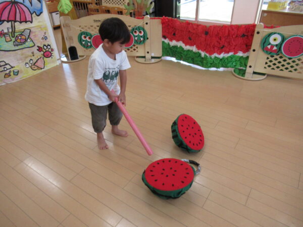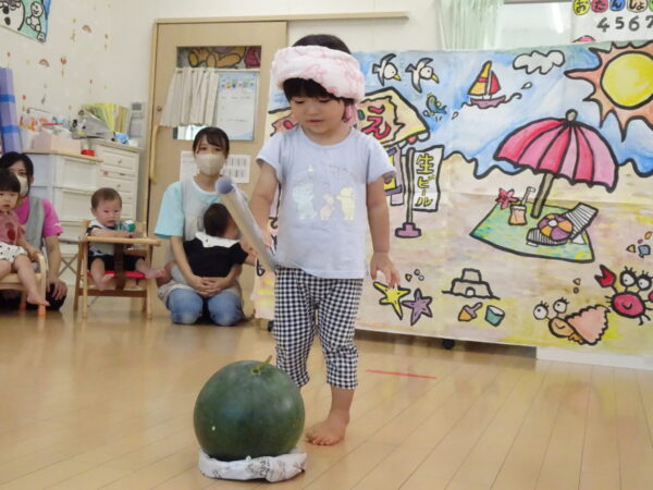 2025年7月31日 / 最終更新日 : 2025年7月31日 yamashita 下松市小規模保育園 太陽のテラス スイカわりで遊ぼう🍉 毎日 暑い日が続いていますが 太陽のテラスのお友だちは 元気いっぱいです😊 夏の風物詩 スイカわりで遊びましょう 大きな スイカ🍉 触ってみよう! スイカ割りはじめるよ~ そらぐみさん がんばって✨ なかなか割れないね~ つきぐみさん がんばって✨ 割れません😢 はな組さん がんばって✨ はなぐみさんより 大きい! まだまだ 割れないね~ それなら ”なんちゃってすいか”で もう一度! おいしいスイカ 「いただきまーす!」 スイカわりは 楽しくて おいしいね🍉 \ 最新情報をチェック / FacebookXBlueskyHatenaCopy