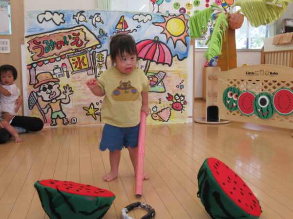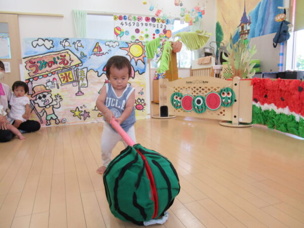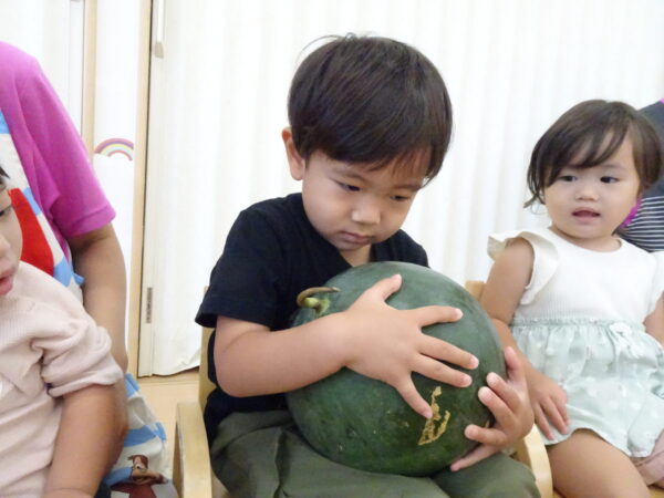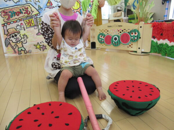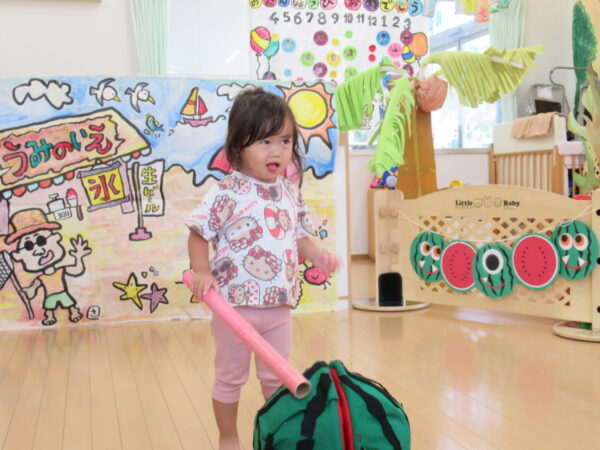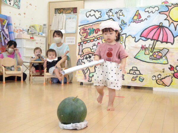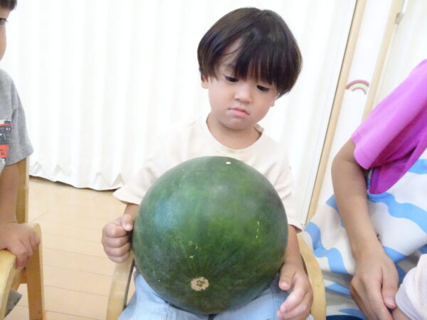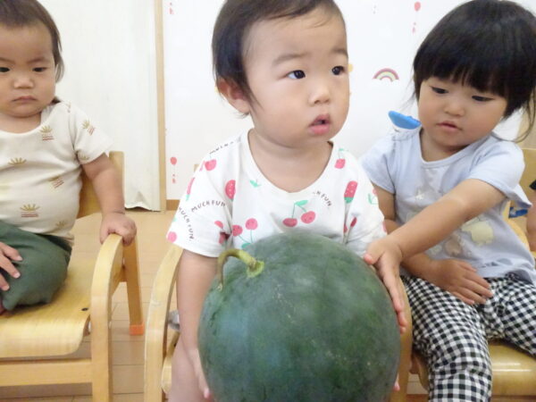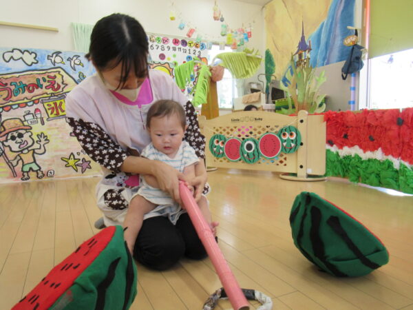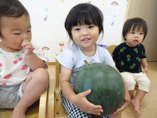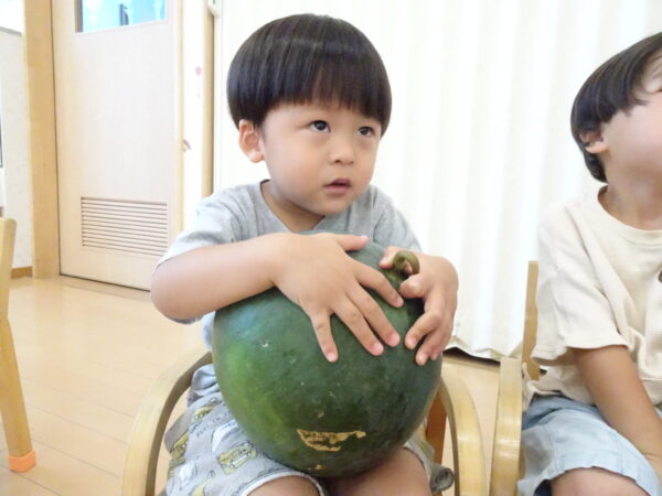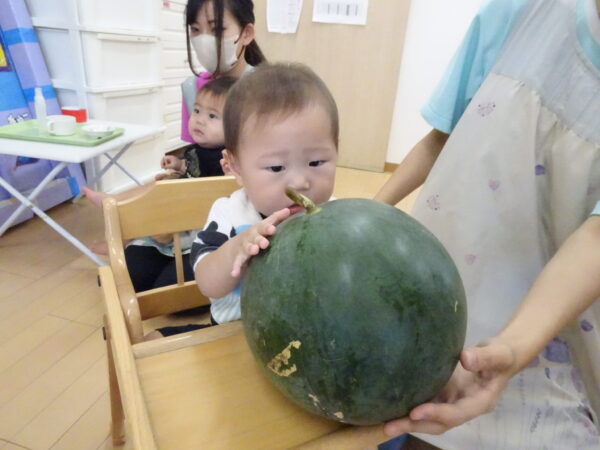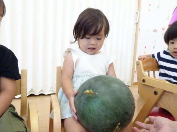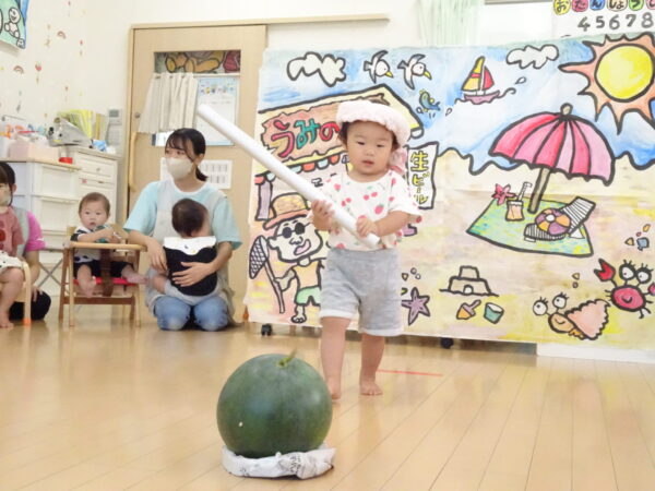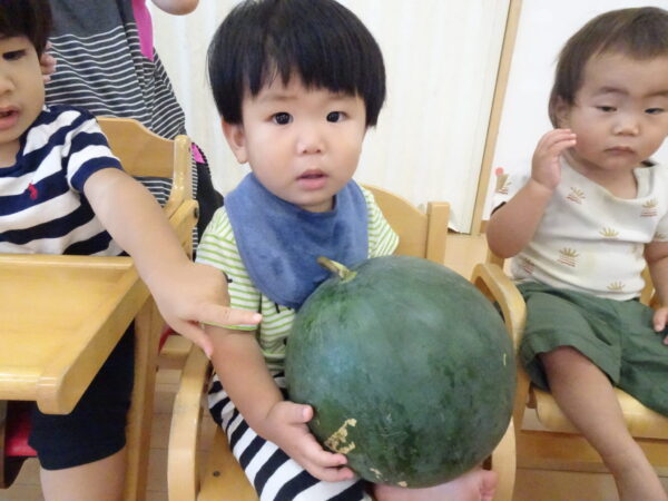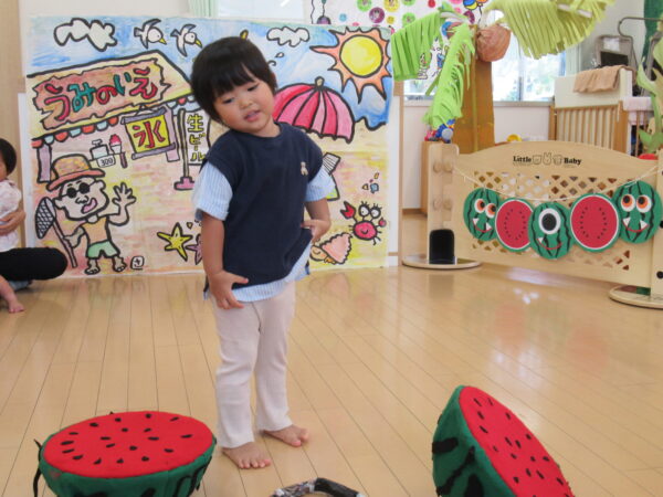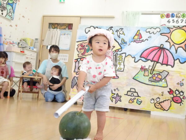 2025年7月31日 / 最終更新日 : 2025年7月31日 yamashita 下松市小規模保育園 太陽のテラス スイカわりで遊ぼう🍉 毎日 暑い日が続いていますが 太陽のテラスのお友だちは 元気いっぱいです😊 夏の風物詩 スイカわりで遊びましょう 大きな スイカ🍉 触ってみよう! スイカ割りはじめるよ~ そらぐみさん がんばって✨ なかなか割れないね~ つきぐみさん がんばって✨ 割れません😢 はな組さん がんばって✨ はなぐみさんより 大きい! まだまだ 割れないね~ それなら ”なんちゃってすいか”で もう一度! おいしいスイカ 「いただきまーす!」 スイカわりは 楽しくて おいしいね🍉 \ 最新情報をチェック / FacebookXBlueskyHatenaCopy