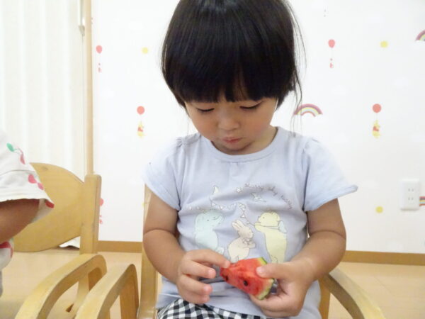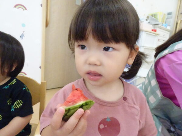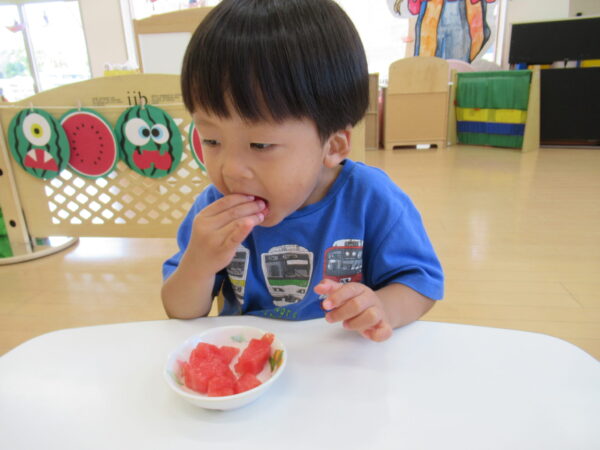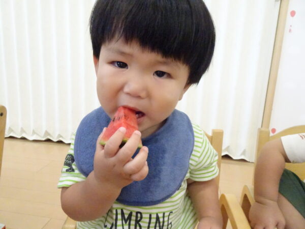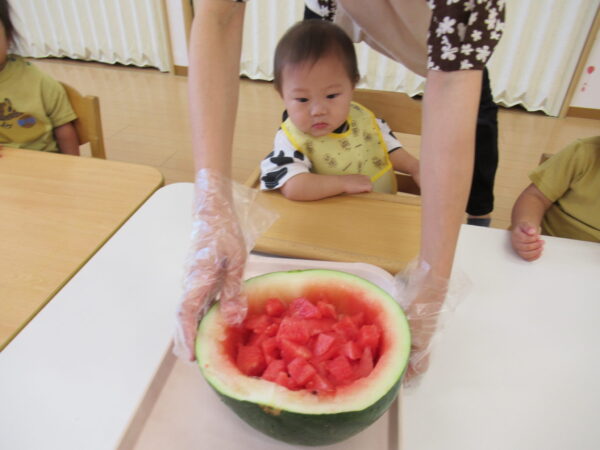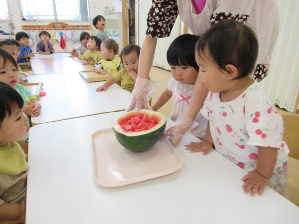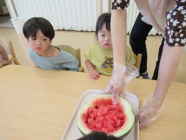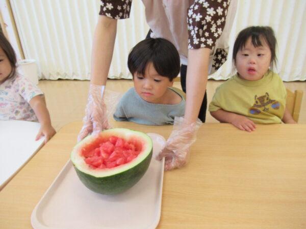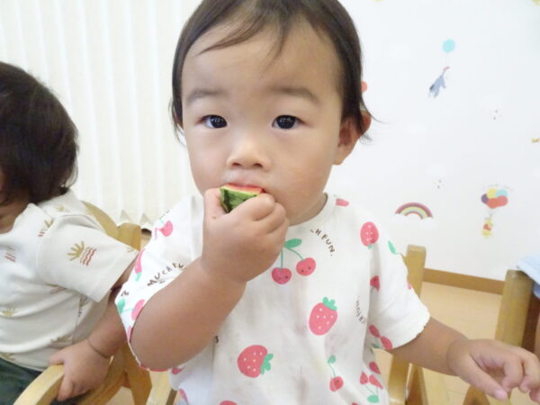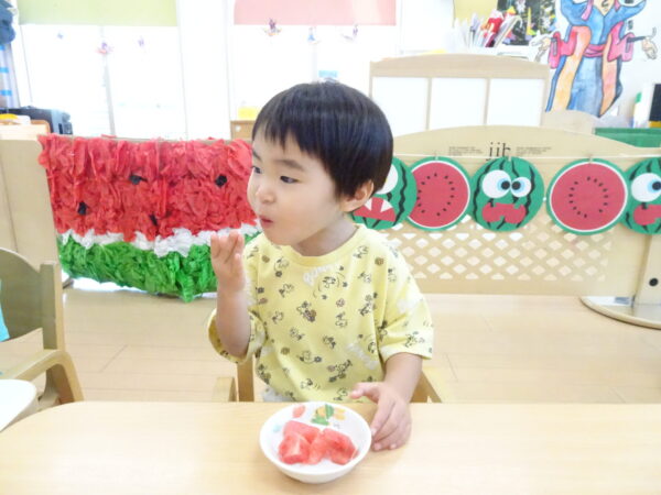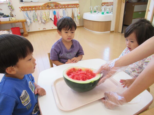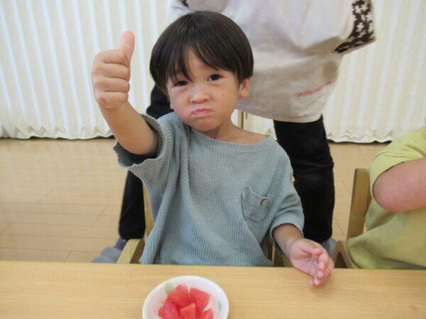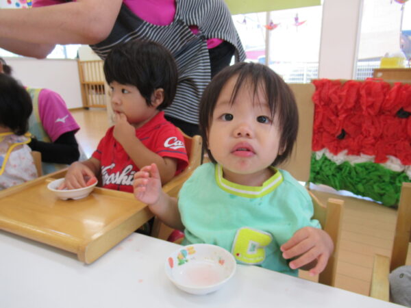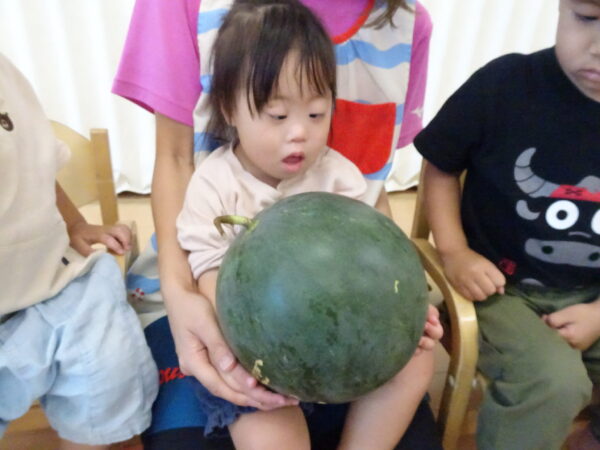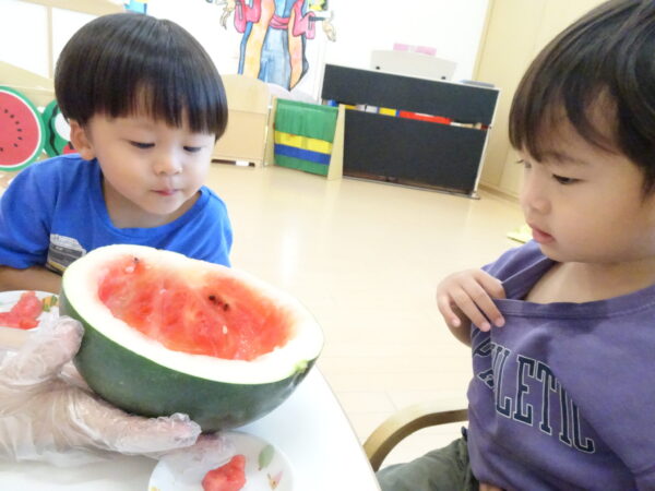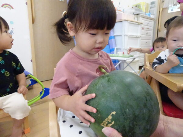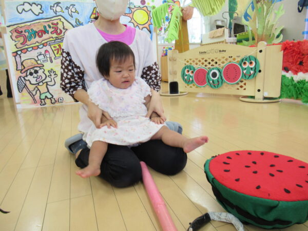 2025年7月31日 / 最終更新日 : 2025年7月31日 yamashita 下松市小規模保育園 太陽のテラス スイカわりで遊ぼう🍉 毎日 暑い日が続いていますが 太陽のテラスのお友だちは 元気いっぱいです😊 夏の風物詩 スイカわりで遊びましょう 大きな スイカ🍉 触ってみよう! スイカ割りはじめるよ~ そらぐみさん がんばって✨ なかなか割れないね~ つきぐみさん がんばって✨ 割れません😢 はな組さん がんばって✨ はなぐみさんより 大きい! まだまだ 割れないね~ それなら ”なんちゃってすいか”で もう一度! おいしいスイカ 「いただきまーす!」 スイカわりは 楽しくて おいしいね🍉 \ 最新情報をチェック / FacebookXBlueskyHatenaCopy