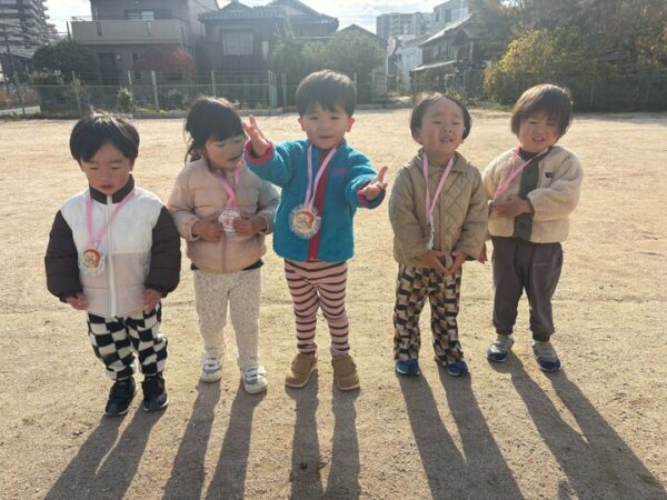 2025年12月3日 / 最終更新日 : 2025年12月3日 木村由貴子 企業主導型保育園 さくらのテラス マラソン大会😊 今日は、マラソン大会をしました♪♪♪ にじ組さんもゆき組さんの応援団✨ 1曲流れている間、走り続けるほし組さんに、職員一同感動で涙が・・・ メダル🏅を園長先生からかけてもらいました♡♡♡ 最高の笑顔が見られました😊 次は、にじ組さん‼「えい!えい!オー!」 園長先生からメダル🏅をかけてもらって嬉しそう♪♪♪ ゆき組さんは、ほし組のお兄ちゃん、お姉ちゃんのところへ走りました♪♪♪ にじ組さんもメダル🏅もらって嬉しそうです☆ \ 最新情報をチェック / FacebookXBlueskyHatenaCopy