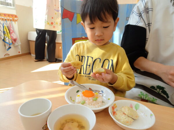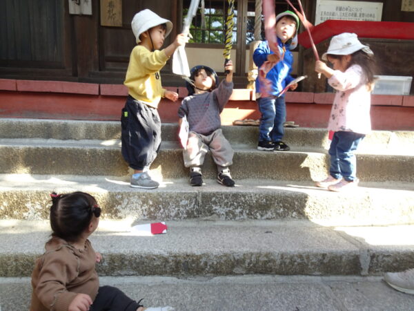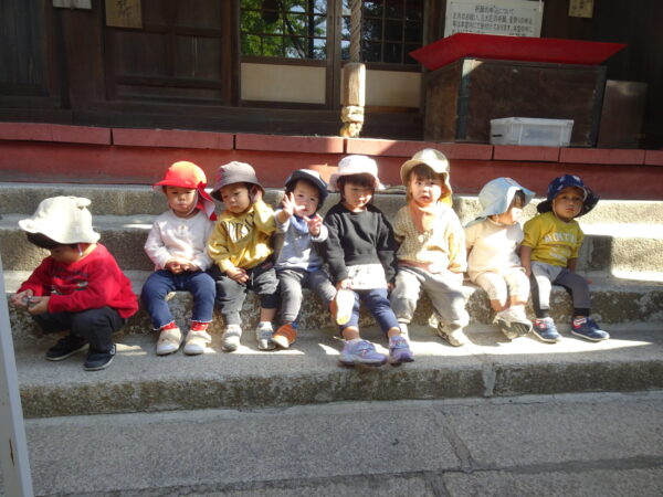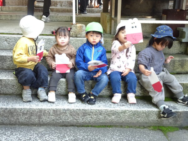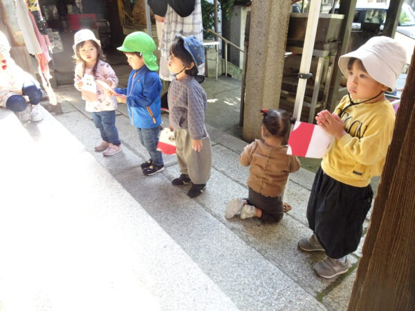 2025年11月14日 / 最終更新日 : 2025年11月14日 yamashita 下松市小規模保育園 太陽のテラス 七五三お祝い 今日の太陽のテラス神社は かわいいお詣りの方で にぎやかです 太陽のテラスのおともだちの 健康と健やかな成長を願って 妙見宮にお詣りに行きました そらぐみさんは 自分で作った千歳飴袋を持って行きました つきぐみさん はなぐみさんも お詣り できました そらぐみさんは保育園に帰って 先生に飴をいただきました♬ 今日のお給食は 七五三お祝いメニューです みんなでいただきます 今年もみんなで 七五三のお祝いができて うれしいです これからも すくすく大きくなってね \ 最新情報をチェック / FacebookXBlueskyHatenaCopy