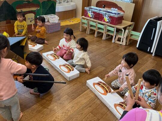 にじぐみさんは掛け声に合わせて太鼓を叩きます🥁