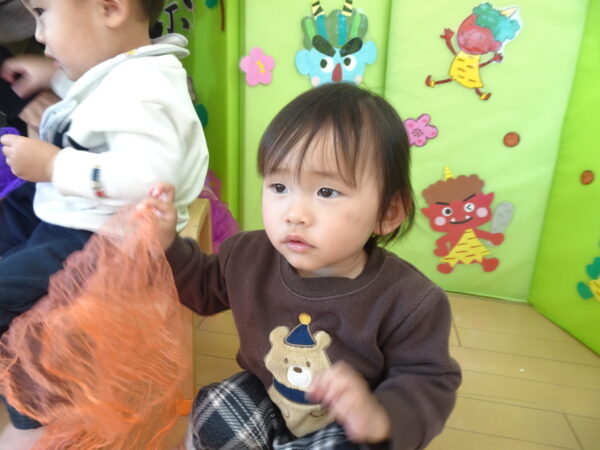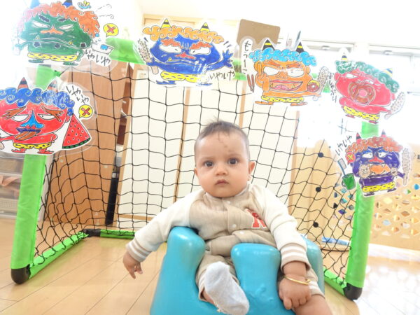 果敢に 鬼に豆を投げるお友だちもいました